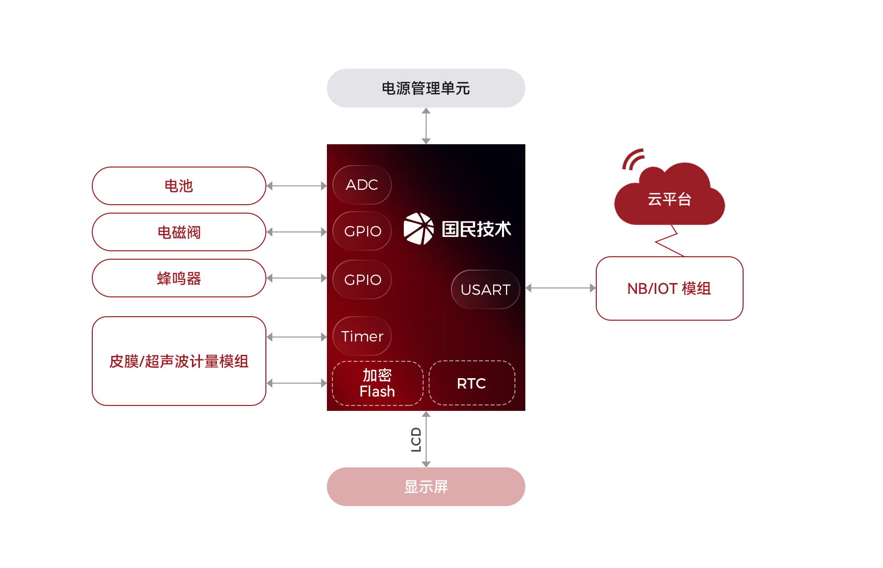 • Flash支持 128-384KB,支持加密存储、分区管理及数据保护,支持硬件ECC校验,10万次擦写次数,10年数据保持,可有效保护气表内的数据,防止偷盗气等行为