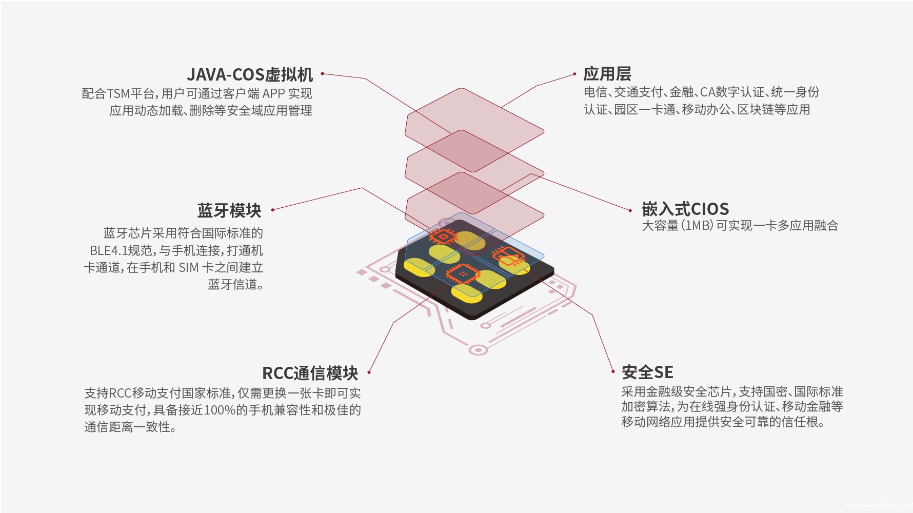 工作机会基于RCC近距物联技术的高安全RCC蓝牙SIM卡产品采用先进的SiP技术,将支持商密算法的金融级安全芯片、RCC芯片、蓝牙芯片封装进一张NanoSIM卡中,可以融合电信、金融支付、安全认证等多种应用,可跨手机操作系统实现线上、线下的移动安全认证和近距物联应用。产品算法支持全面,采用JAVA架构,实现应用多样化,提供成熟的开发套件,易于用户实现二次开发。