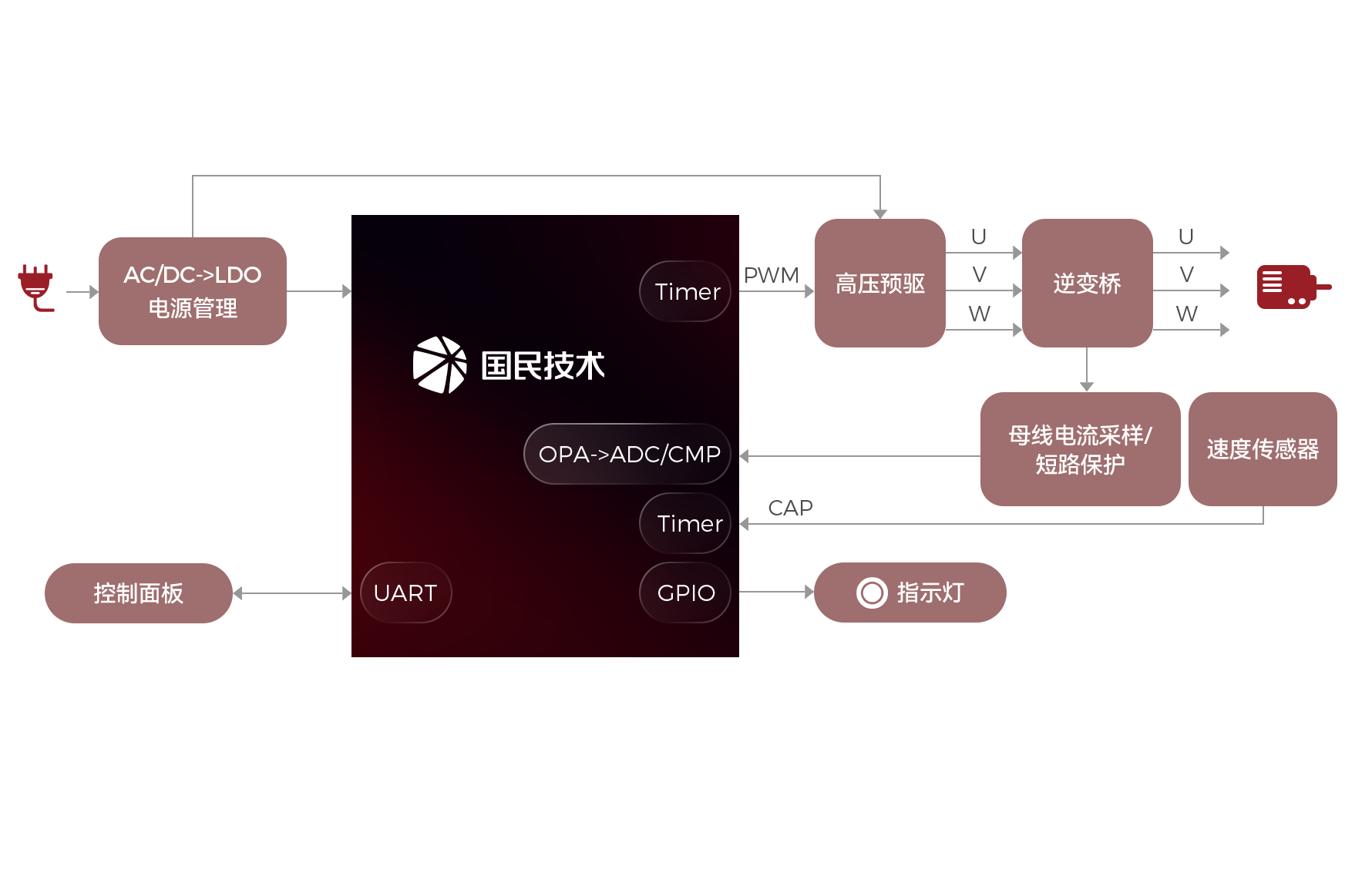 工作机会冰箱应用采用先进的无位置传感器FOC控制策略,适用于家用冰箱、军用空调、商用空调、车用空调等单个压缩机变频调速的应用场景。技术规格如下: